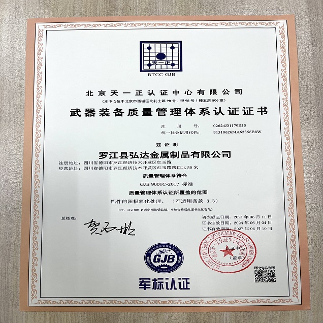 罗江县弘达金属制品有限公司成立于2016年6月,总投入资金3200万元,固定资产2600万元。是一家专业从事表面处理的科技先导型企业,配置有全自动的阳极氧化线一条(槽液容量30000升),全自动化学镍(槽液容量3600升)、碱性锌镍合金(槽液容量14000升)、碱性镀锌一体线(槽液容量7100升)组合线一条,镀硬铬(槽液容量9000升),设备运行采用先进的PLC控制,PC全自动实时监控各个参数指标及变频调速PID温度控制,目前成绵德三地先进的表面处理生产线,检测仪器采用德国菲希尔膜厚检测仪,精度可达到0.5um,硬度计采用电脑自动对焦取点,准确度高,自动打印数据安全可靠。